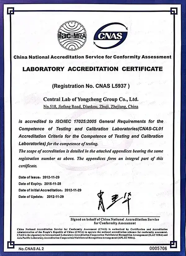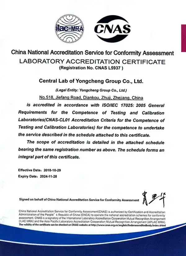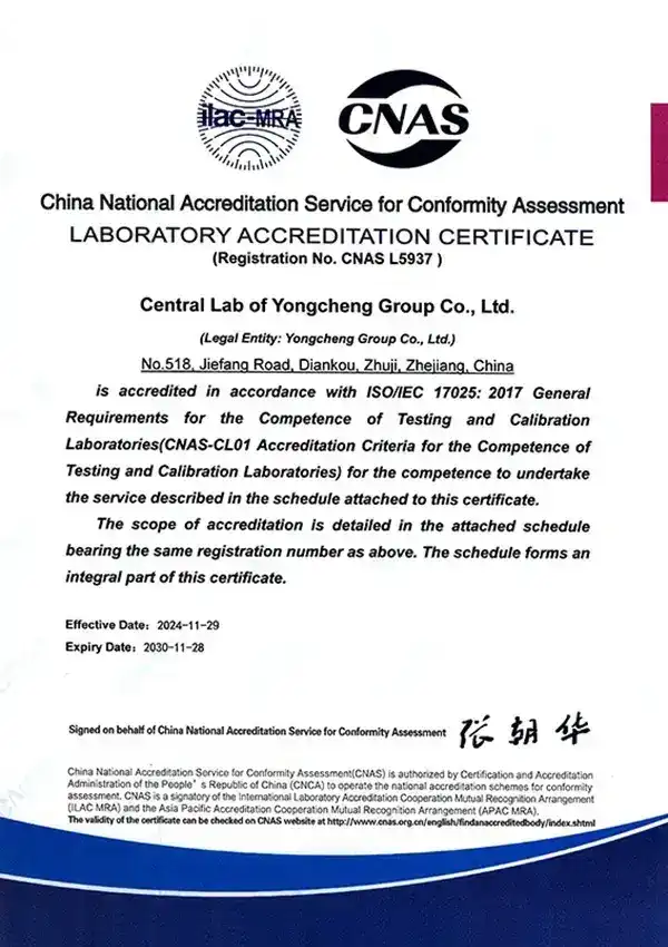 في هذا العام تم تجديد الاعتماد الدولي لمختبرنا، حيث جدد مختبرنا اعتماد CNAS لكفاءة الاختبارات، محافظاً على نفس نطاق الاختبارات والمعايير المعتمدة منذ 2012. ويؤكد هذا التجديد قدرتنا المستمرة على الحفاظ على دقة الاختبارات وجودة النتائج عبر الزمن، بما يضمن موثوقية عالية لكل مكون ننتجه وفق أعلى المعايير العالمية.